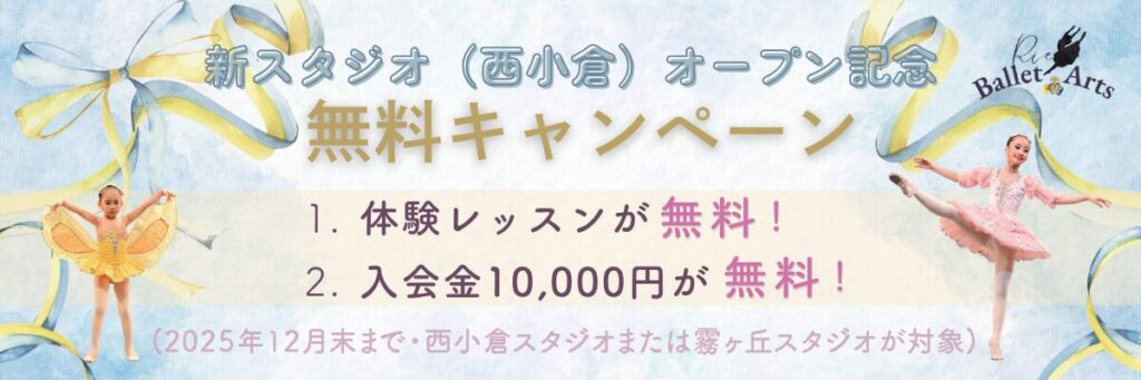RIEバレエアートのレッスン場所は、「★西小倉スタジオ」「★霧ヶ丘スタジオ」の2つのスタジオがメインスタジオとなり、無料体験レッスン・お得な入会特典など特別にご用意しております。